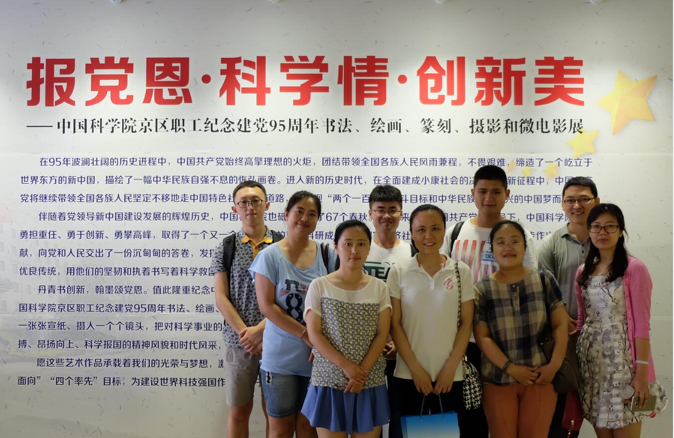 2016年7月11日,第一研究室团支部组织青年职工和学生到中科院文献情报中心参观了中国科学院京区职工纪念建党95周年书法、绘画、篆刻、摄影和微电影展。