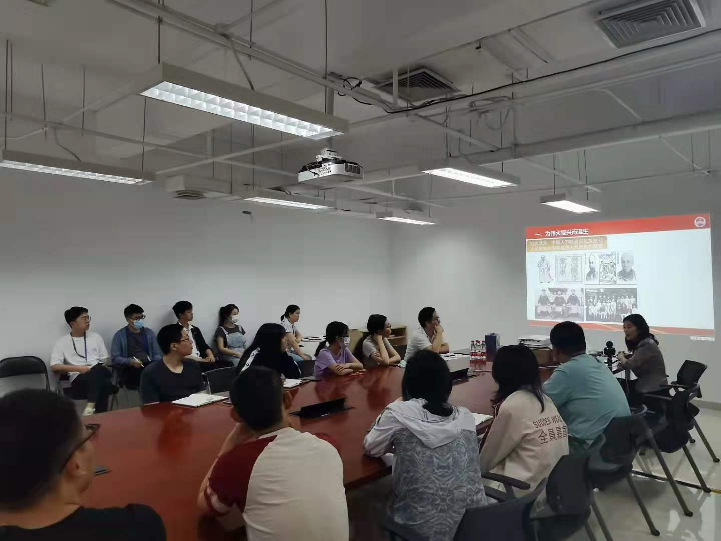 张秀娟副教授从为伟大复兴而诞生、为伟大复兴而奋斗和历史启示三方面,讲述了中国共产党的成立、发展历程以及一路走来的历史经验。“中国共产党一经成立,就把实现共产主义作为党的最高理想和最终目标,义无反顾肩负起实现中华民族伟大复兴的历史使命,团结带领人民进行了艰苦卓绝的斗争,谱写了气吞山河的壮丽史诗。”在建党初期,无数先辈们浴血奋战,只为实现民族独立和人民解放;建国之后,中国人民艰难探索,社会主义建设在曲折中前进,并在改革开放后,逐渐走上中国特色社会主义新道路。张秀娟副教授的讲述生动而深刻,从历史出发,引申出当时的背景、起因和影响等,让支部成员们对于党史有了深入的了解,也更加体会到中国共产党一路走来的艰辛。中国共产党的历史就是一部为中华民族伟大复兴而不懈奋斗的历史,我们要学史读史,不忘历史,缅怀先烈,珍视和平,不忘初心,牢记使命。中国特色社会主义道路是经过实践证明的适合中国国情的道路,在中国共产党的领导下,不断完善中国特色社会主义,是实现中华民族伟大复兴的必由之路。