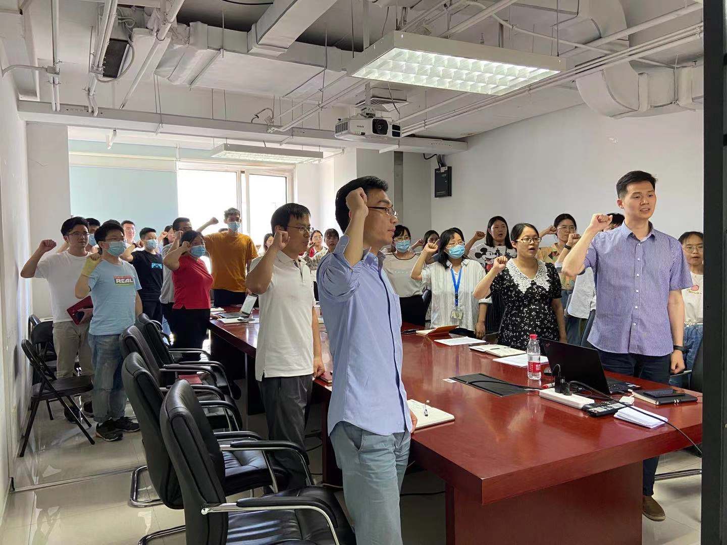 入党誓词是行动指南,是共产党人的座右铭,不断重温,终身践行,前进路上,对照承诺,时时检视自我,不断校正航向,方能行稳致远。6月18日,在支部书记卢志刚的带领下,全体党员一起高举右手,面对鲜红的党旗,再次庄严宣誓:“我志愿加入中国共产党……随时准备为党和人民牺牲一切,永不叛党。”铿锵恢宏的誓词,强烈震撼着在场的每一位党员,坚定了入党使命和奋斗初心。