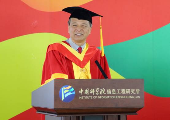 田静首先致辞,代表信息工程研究所向全体毕业生表示热烈祝贺。他指出,今天是研究所成立之后招收的第一批研究生毕业的日子,这是研究所的骄傲,也是我的荣幸。在中国科学院和国家有关部门的大力支持下,在全所师生的不懈努力下,短短四年时间,研究所各项事业蓬勃发展,这其中有各位同学奉献的光和热。希望毕业生们在中华民族伟大复兴的中国梦进入第一个百年目标即将实现的关键时期,在网络安全和信息化成为国家战略的重要组成之际,要肩负起党的重托和人民的期望,自觉地将个人的成长梦与国家发展、民族兴旺的中国梦紧密相连。最后,田静所长结合自己的成长经历,送给毕业生三句赠言:一要实现价值,兼济天下,要义不容辞地把个人成长融入中华民族伟大复兴的进程;二要博学慎思,明辨笃行,在坚持学习的同时,更多地思考,明辨是非学理,并落实到行动中,持之以恒;三要保持定力,不改初衷,在面对各种选择和诱惑时,要坚定理想信念,不忘初心,才能成就人生的价值。