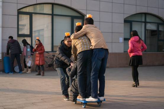 头顶球拉板车