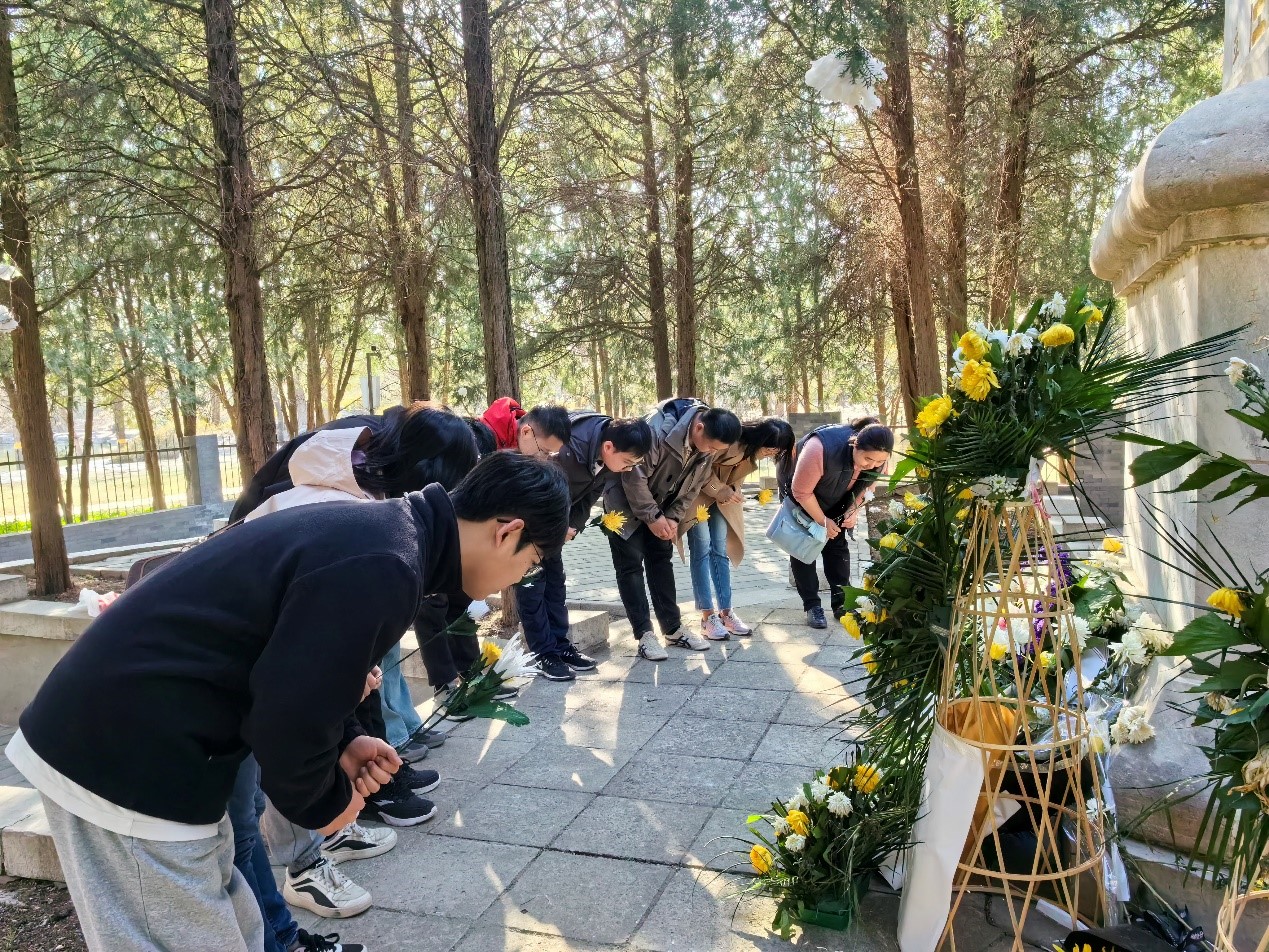 3月20日,党小组成员前往圆明园西南角的九州清晏,参观三一八烈士墓。在烈士墓前,小组成员举行了简洁而庄重的仪式,默哀并献上自己的手工花,每一朵菊花都凝聚了对英烈的深情记忆和对和平岁月的珍视。此刻,不仅是对那段悲壮历史的缅怀,更是一次心灵的洗礼,激发了大家的爱国情怀和历史责任感。参观后小组成员就“如何将烈士的精神传承下去,如何在日常生活中践行这份精神”分享了自己的感受与思考。