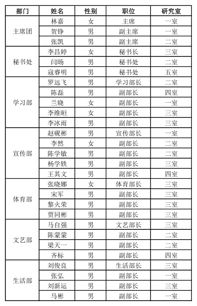 信息工程所第二届学生会名单及分工