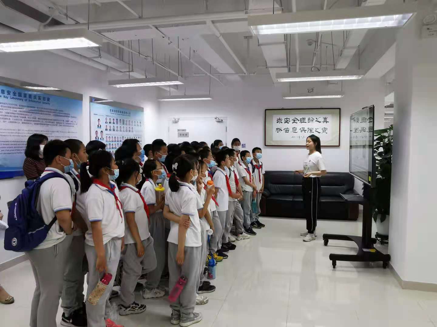 此次活动主要包括科普漫画展、互动游戏和科学报告会三项内容。科普漫画展中,实验室学生通过自主创作的十余副精美漫画,展示了实验室的历史、研究方向和研究领域内的基本科学原理,学生志愿者现场为参观师生介绍了漫画创作的初心和漫画阐述的科学知识,用艺术的形式让小学生受到科学启发;互动游戏环节,实验室老师组织参观的小朋友们完成了《Internationale Morse Code》小游戏,让小朋友们在游戏的同时感受到了密码的魅力;随后,屠晨阳博士做了《密码科学家的故事》主题科学报告,并与小朋友们进行了热烈的互动。