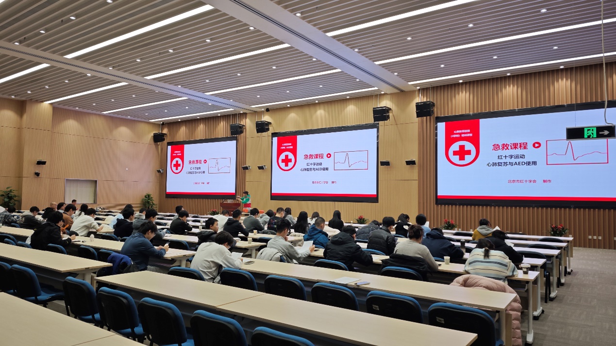 为进一步普及应急救护知识,提升同学们应对突发状况的自救互救能力,12月2日,学生教育处联合海淀区红十字会成功举办了“黄金四分钟·为生命护航”心肺复苏(CPR)与AED救护培训活动。活动吸引了来自各研究室的50余名同学参加。